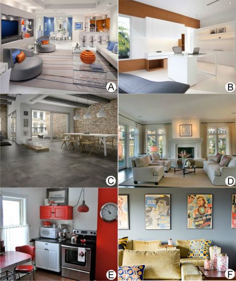 E. Retro เรโทร เป็นสไตล์การแต่งบ้านที่ฮิตมากเมื่อราวๆ สี่ห้าปีก่อน "เรโทร" คือสไตล์ย้อนยุค 60' 70' รูปแบบการแต่งบ้านที่มีวัฒนธรรมป๊อปอาร์ตเข้ามาเกี่ยวข้อง การใช้สีสันตกแต่งผนังที่ฉูดฉาด มีเส้นสายและลวดลายแบบกราฟฟิก แต่รูปทรงจะมีความโค้งมนและนุ่มนวลกว่าโมเดิร์น
