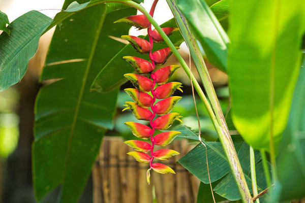 ในการจัดสวนบาหลีนอกจากจะมีพรรณไม้ให้ร่มเงาแล้ว ควรจะแต่งแต้มความสดใสด้วยสีสันสวยงามของไม้ดอกด้วย ซึ่งไม้ดอกที่นิยมนำมาจัดสวนบาหลีเป็นดอกไม้ที่มีสีสันจัดจ้านและมีเอกลักษณ์เฉพาะตัว เช่น ลีลาวดี, ชบา, เบิร์ดออฟ พาราไดซ์ (ปักษาสวรรค์), บัว, ชวนชม, เฮลิโคเนีย (ธรรมรักษา) และกล้วยไม้