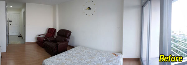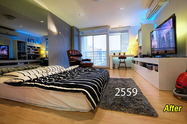 ด้านบนเป็นภาพเมื่อเสร็จแล้ว ส่วนด้านล่างเป็นภาพก่อนรีโนเวทครับ ซึ่งหลังจากซื้อห้องมา ก็แค่ซื้อตู้โต๊ะหนังสือ ที่วางทีวีของคอนเซ็ปต์ ตู้เสื้อผ้าของเอสบีมาใส่ ตามด้วยซื้อทีวี ตู้เย็น ไมโครเวฟเข้าบ้านครับ หลังจากนั้นก็อยู่อย่างนั้นมาอีก 5-6 ปีเลยครับ