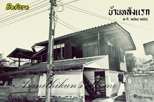 เลยตัดสินใจกู้ธนาคารเพื่อทำบ้าน เริ่มสร้างบ้านเดือนมกราคม-เมษายน 2559 เป็นเวลา 3 เดือนกว่า ก็เสร็จแล้ว อาจจะดูธรรมดา แต่โคตรภูมิใจตรงที่ว่าเราช่วยกันทำเอง บ้านเกิดจากน้ำพักน้ำแรง และหยาดเหงื่อของพวกเราเอง โดยได้รื้อบ้านหลังเก่าที่มีระยะเวลากว่า 30 ปี "บ้านหลังแรกของเรา" (ไม้หลังเก่าเก็บไว้ทำครัวไทยภาคเหนือหลังบ้าน)