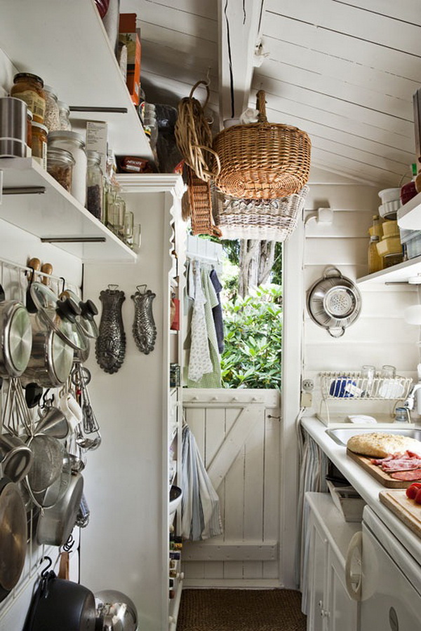 ใครที่อยู่คอนโดแต่อยากได้บรรยากาศเหมือนอยู่บ้านในคันทรีไซด์ ให้ตีผนังด้วยไม้แผ่น โดยอาจแขวนเครื่องครัวอวดโฉมไว้บนผนัง เพื่อแสดงตัวว่าเราก็เป็นแม่ครัวตัวจริง