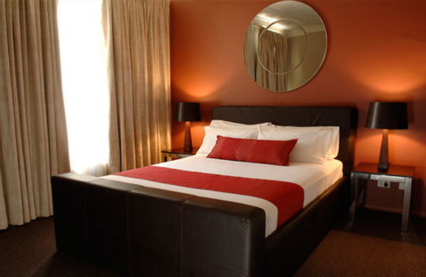 เป็นสีแห่งความโรแมนติก แต่ต้องระมัดระวังในการนำมาใช้ในห้องนอน เพราะเป็นสีที่เข้มข้นและมีพลัง การแต่งห้องนอนด้วยสีแดงนี้ ต้องสร้างความสมดุลด้วยการใช้เฉดสีอ่อนเข้ามาช่วย เช่นสีขาว โดยทำให้มีพื้นที่สีขาวในห้องให้มากหน่อย เพื่อลดความเข้มข้น และให้พลังในทางบวก