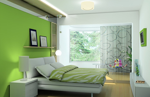 เป็นสีที่ให้ความสดใส และเหมาะสำหรับห้องนอนมาก เพราะเป็นสีที่มาจากสีเหลือง ซึ่งเป็นสีโทนอุ่น และสีฟ้า ซึ่งเป็นสีโทนเย็น นอกจากนี้ สีเขียวยังเข้ากับของแต่งห้องสีอื่น ๆ ได้หลากหลาย เหมาะกับห้องนอนหลายสไตล์อีกด้วย