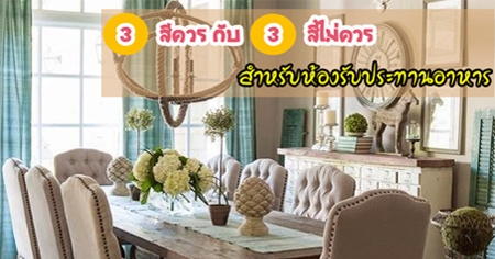 สีมีอิทธิพลต่อความรู้สึกอยากรับประทานอาหาร Sally Augustin และ Sherwin-Williams นักออกแบบ ซึ่งใช้ศาสตร์ทางวิทยาศาสตร์เข้ามาช่วยในการสร้างผลงานบอกว่า สีของห้องอาหารนั้น ส่งผลอย่างมากต่อความรู้สึกอยากอาหารของคนเรา และมี 3 สีที่เราควรเลือกใช้ในขณะที่อีก 3 เราควรหลีกเลี่ยงดังนี้
