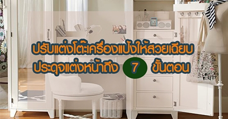 ใครรู้สึกว่าการวางเครื่องสำอางหรืออุปกรณ์แต่งหน้าบนโต๊ะมันเกะกะ จะเก็บในลิ้นชักก็หยิบจับลำบากเพราะมองไม่เห็นของ เราขอแนะนำโต๊ะเครื่องแป้งที่มี top เป็นกระจกใส นอกจากจะช่วยให้ดูเป็นระเบียบ เก็บของได้เยอะแล้ว ยังช่วยให้โต๊ะเครื่องแป้งของเราดูดีมีสไตล์อีกด้วย