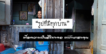 "รูปที่มีอยู่ทุกบ้าน" คงไม่มีไม่เคยได้ยินคำนี้นะครับ สำหรับรูปที่ว่านั่นก็คือพระบรมฉายาลักษณ์ของ พระบาทสมเด็จพระปรมินทรมหาภูมิพลอดุลยเดช หรือในหลวงรัชกาลที่ 9 ของเรานั่นเอง ซึ่งรูปของพระองค์มักจะปรากฎอยู่ในทุกบ้าน ไม่ว่าจะเป็นบ้านขนาดเล็กในสลัมไปจนถึงบ้านหลังใหญ่ระดับคฤหาสน์ ก็จะมีรูปของพระองค์ท่านอยู่เสมอๆ