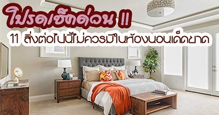 ถ้าคุณเป็นคนหนึ่ง ที่ไม่อยากให้ห้องนอนรก คุณควรจะนำของ 11 สิ่งที่ออกไป แต่เชื่อหรือไม่ว่า 11 สิ่งที่ไม่ควรมีอยู่ในห้องนอนนี้เป็นสิ่งที่คนจำนวนมากมีไว้อย่างน้อยก็ 2-3 ชิ้น ทั้ง ๆ ที่มันเป็นสิ่งที่ไม่มีความจำเป็นสำหรับการนอนหลับพักผ่อนของเราเลยแม้แต่น้อย