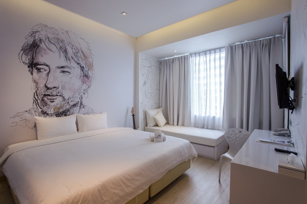 คือให้ยาวออกไปทางด้านข้างทั้งสองด้านอีกสักหน่อย พอให้เราวางโต๊ะหัวเตียงได้ จะทำให้ดูมีสไตล์ขึ้นมาได้ ทั้ง ๆ ที่ดูเรียบง่าย หากเราเลือกขนาดใหญ่กว่าที่นอน และเลือกสีสันที่สดใส ก็จะทำให้ห้องนอนนั้นออกไปในแนวทันสมัยมากขึ้น