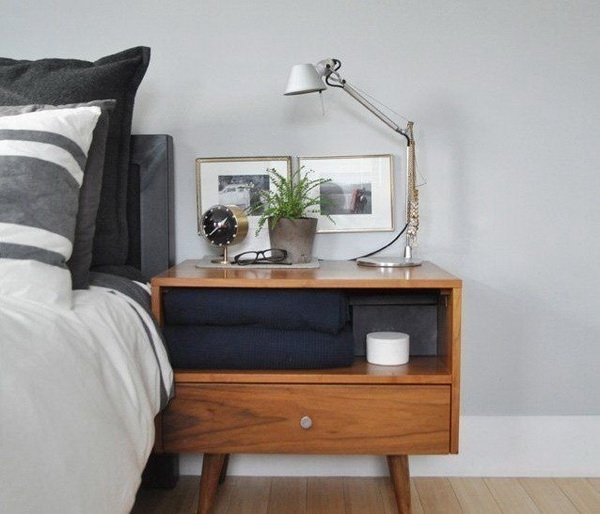 ไม่ควรวางอะไรไว้มากมาย ควรจะทำให้สะอาดที่สุด สิ่งที่ควรมีหลัก ๆ เพียงชิ้นเดียวก็คือโคมไฟในสไตล์ทันสมัยเช่นกัน อาจจะเลือกโต๊ะหัวเตียงที่มีลิ้นชักสัก 2 ชั้น เพื่อเก็บสิ่งของได้บ้าง จะไม่ต้องวางอะไรเลอะเทอะด้านบน การจัดแบบนี้ ทำให้ง่ายต่อการดูแลทำความสะอาดด้วย