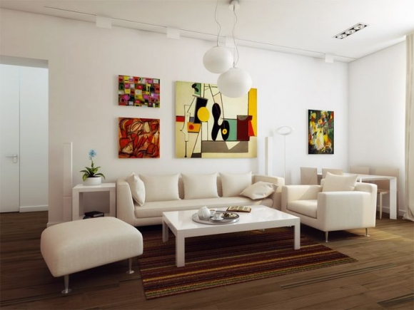 "ผนังห้องว่างอยู่ก็มักจะได้รับคำแนะนำให้ไปหารูปภาพมาติดเสีย" จะทำให้ห้องดูสวยงามมากขึ้นคำนี้ก็มักจะได้ยินกันบ่อยๆ ด้วยว่าภาพหรือรูปภาพเป็นสิ่งที่ค่อนข้างหาง่ายสำหรับเจ้าของบ้านนี้เอง ทำให้เวลาจะจัดห้องก็ต้องนึกถึงรูปภาพ จนบางครั้งการติดรูปภาพก็ไม่ทำให้ห้องดูสวยงามได้ เนื่องจากเวลาที่ไปหารูปภาพอาจไม่ได้คำนึงถึงขนาดเนื้อที่ของผนังห้องที่จะใช้ติด รูปภาพอาจจะใหญ่เกินไปหรือเล็กเกินไป เหล่านี้ก็ทำให้ห้องดูไม่สวยงามได้ การติดรูปภาพประดับผนังที่ดูเหมือนว่าเป็นเรื่องง่ายนั้น ความจริงการติดรูปภาพก็จำเป็นต้องคำนึงศิลปะเช่นกัน โดยต้องมีการจัดองค์ประกอบบนฝาผนัง รวมกับลักษณะของการจัดเครื่องเรือนในห้องตามกันไป ไม่ใช่รูปหันไปทางหนึ่ง เครื่องเรือนหันไปอีกทางหนึ่ง ทำให้จังหวะที่พอเหมาะที่จะทำให้เกิดความสวยงามขาดหายไป หรือในลักษณะของการจัดเครื่องเรือนที่ไม่ช่วยส่งเสริมให้เห็นรูปภาพในตำแหน่งที่พอดีกันก็อีกเช่นกัน นอกจากนี้ยังต้องคำนึงถึงขนาดของรูปภาพกับขนาดของผนังห้อง และผนังห้องนั้นเป็นแบบเรียบๆ หรือมีการตกแต่งเส้นคิ้วบัวแบ่งช่องเอาไว้อย่างไร ขนาดรูปจะพอดีกับขนาดช่องที่แบ่งเอาไว้แล้วหรือไม่ เหล่านี้ก็ต้องคิดดูให้ดีก่อนติด เพราะถ้าติดลงไปแล้วส่วนที่ลงทุนแต่งผนังอย่างสวยงามถูกรูปภาพปิดทับไว้หมด ดูยุ่งเหยิงเกินกว่าที่จะดูสวยงาม