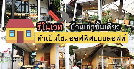 ตกแต่งบ้านเก่าชั้นเดียว รีโนเวทใหม่ใช้เป็นโฮมออฟฟิศ เปลี่ยนจากบ้านเก่าให้กลายเป็นโฮมออฟฟิศประหยัดงบสไตล์ลอฟท์ ออกมาสุดเท่ทันสมัย ร่มรื่นมีสวนสวย ได้ทั้งอยู่เองและทำงานไปด้วยในตัว