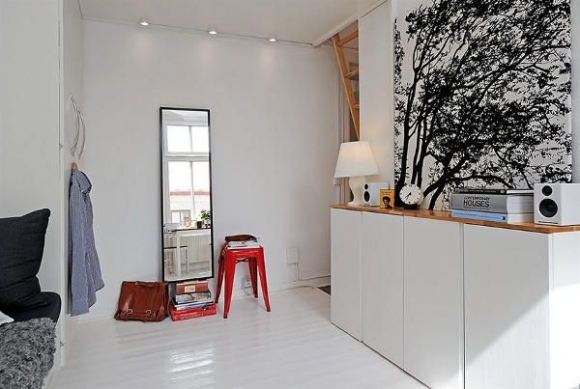4. ใช้ของประดับตกแต่งห้องที่ช่วยให้ห้องดูโปร่งกว้าง เช่น กระจกเงาบานใหญ่ วอลเปเปอร์ลายทางยาว ติดผ้าม่านจากขอบเพดานลงมาแทนการติดจากขอบหน้าต่าง