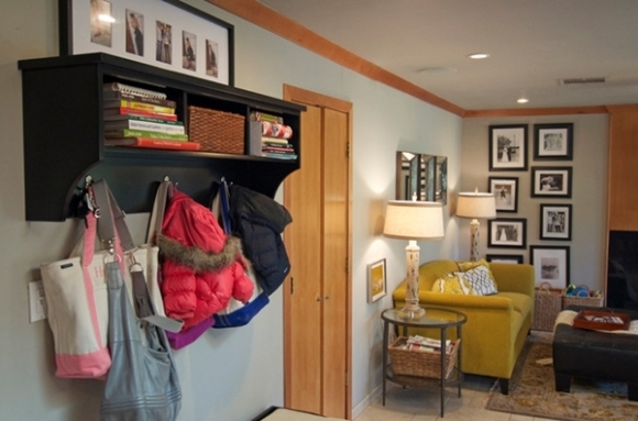 แม้ว่าบ้านของคุณจะมีพื้นที่จำกัด จนไม่สามารถแบ่งที่ทางไว้ทำเเป็นห้องโถงได้ แต่ต้องเปิดประตูบ้านเข้าไปเจอกับห้องนั่งเล่นโดยทันทีก็ไม่เป็นไรหรอก เพราะคุณสามารถดัดแปลงให้ห้องนั่งเล่นมีบรรยากาศเป็นกันเองได้เหมือนกัน ด้วยการติดราวแขวนเสื้อเอาไว้ข้างประตูคล้ายกับเป็นห้องโถง เท่านี้ห้องนั่งเล่นก็จะดูมีดีเทลขึ้นมาแล้ว แถมยังเพิ่มความสะดวกให้คุณและแขกที่มาเยือนแขวนเสื้อนอก หรือกระเป๋า ได้เลยอีกด้วยนะ