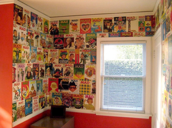 10. ลืมวอล์เปเปอร์ไปได้เลยเพราะหน้าหนังสือพิมพ์หรือนิตยสารสวยๆก็สามารถใช้แทนวอล์เปเปอร์ได้ แค่นำมาติดไปบนผนังทีละแผ่นด้วยกาวติดวอล์เปเปอร์ อาศัยเวลาหน่อยแต่รับรองสวยแน่นอน Tip เคล็ดลับความสวยอยู่ที่การเลือกโทนสี หรือภาพที่เป็นเรื่องราวที่ดูเข้ากัน เพื่อให้ไม่ดูรกตาจนเกินไป