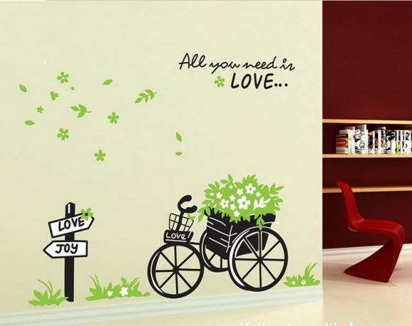 1. ลองสร้างเรื่องราวบนผนังด้วยสติกเกอร์ ที่เราสามารถติดและปรับเปลี่ยนได้ง่ายๆ และเปลี่ยนได้บ่อยเมื่อคุณเบื่อ Tip ใครที่มีฝีมือหน่อยจะลองลอกภาพที่ชอบลงบนสติกเกอร์แล้วตัดเองได้ไม่ยาก แต่ใครที่ใจร้อนก็ลองหาซื้อลายที่มีขายสำเร็จซึ่งก็มีมากจนเลือกไม่ไหว