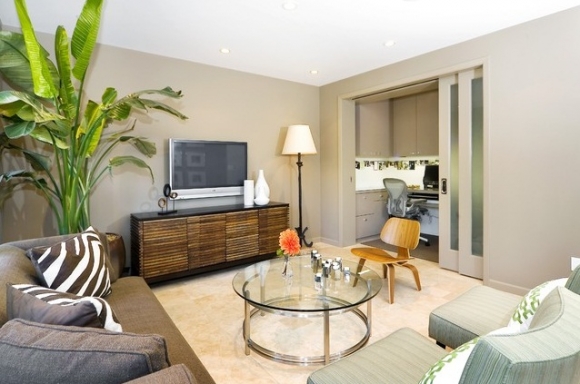 เครื่องเรื่อนที่ทำจากกระจกใสต่าง ๆ ไม่ว่าจะเป็น แจกัน โต๊ะกาแฟ หรือชั้นวางของ จะช่วยให้ห้องรับแขกดูกว้างขวางน่าอยู่มากขึ้น ผิดกับเฟอร์นิเจอร์ทึบตันชิ้นใหญ่เทอะทะ ที่จะทำให้ห้องดูอึดอัดคับแคบไม่น่าพักผ่อน เพราะฉะนั้นคนที่มีบ้านเนื้อที่จำกัดจึงควรมองหาเฟอร์นิเจอร์แนวนี้มาตกแต่งห้องรับแขกของคุณ เพื่อให้ดูโปร่งโล่สบายตาขึ้นนะคะ