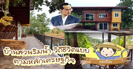 แบบบ้านในสวนริมน้ำ 2 ห้องนอน 2 ห้องน้ำ ขนาด 6x11 เมตร ท่ามกลางท้องนากับป่าปลูกที่สร้างขึ้นตามหลักเศรษฐกิจพอเพียงของ ในหลวงรัชกาลที่ 9