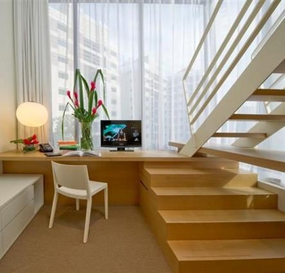 พื้นที่ใต้บันไดของชั้นลอย สามารถทำเป็นชั้นวางของ หรือตู้เก็บของ ตู้หนังสือ หรือการต่อชานพักบันไดให้ยาวออกไปเป็นโต๊ะทำงาน ก็ถือเป็นการจัดการใช้พื้นที่ที่จำกัดให้มีประโยชน์อย่างสูงสุด