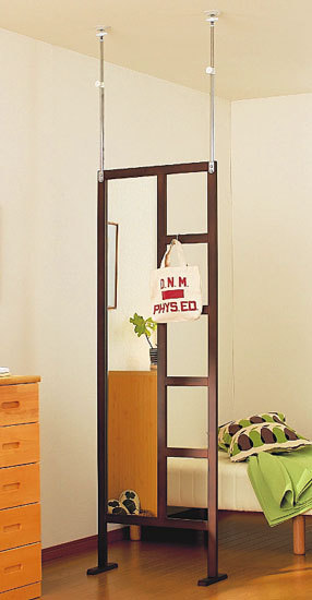ฉากกั้นโปร่งขนาดเล็กกะทัดรัด ใช้แบ่งพื้นที่ห้องนอนกับพื้นที่ ส่วนอื่นๆ .. และทำหน้าที่เป็นที่แขวนของใช้เล็กๆ น้อยๆ อีกหน้าที่หนึ่งด้วยเช่นกัน