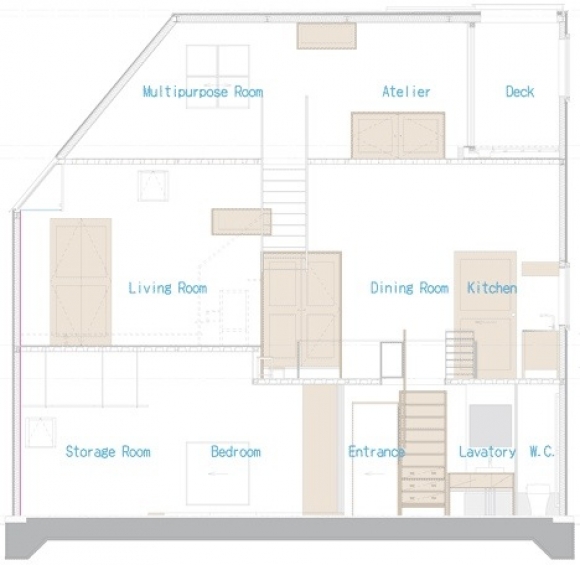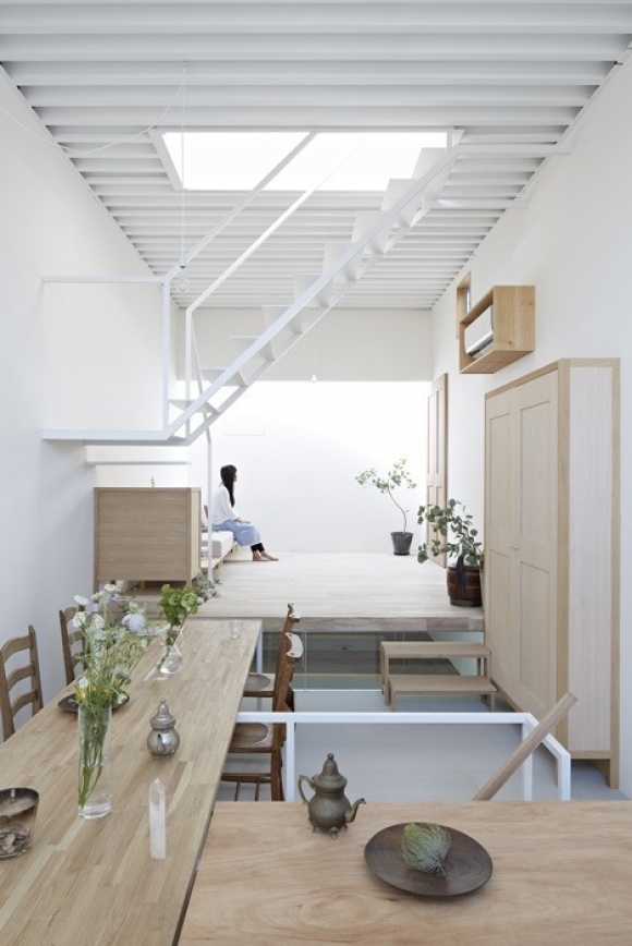 การจัดการกับพื้นที่บันไดในบ้านให้ดูดี และใช้ประโยชน์พื้นที่ได้เต็มที่ ในบ้านที่มีขนาดเล็ก พื้นที่จำกัด เป็นเรื่องท้าทายนักออกแบบเสมอ เช่นเดียวกับบ้านหลังนี้ ผลงานของ Tato Architects สตูดิโอออกแบบชาวญี่ปุ่น ที่ใช้รูปแบบของเฟอร์นิเจอร์ไม้ รวมเข้ากับบันได ที่เชื่อมต่อพื้นที่ และโครงสร้างของทั้ง 3 ชั้น
