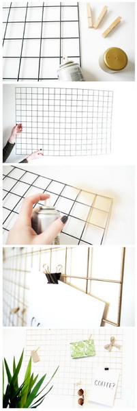 d.i.y ของแต่งห้องของคุณด้วยตะแกรงติดผนังสวยๆ ด้วยการหาตะแกรงซักอันมาใช้ หากต้องการเปลี่ยนสี สามารถใช้สีพ่นทับได้ตามสไตล์คุณ การแต่งคอนโดแบบนี้เหมาะกับหลายสไตล์ เช่น สไตล์ลอฟท์ สไตล์มินิมอล ติดไว้บนผนังบนโต๊ะทำงาน และแปะ Post-it หรือเอกสารสำคัญที่ต้องการเห็นไว้ได้