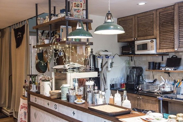 แผ่นไม้เหลือใช้กลายเป็นชั้นวางของเก๋ๆ แผ่นไม้เหลือใช้ หรือเป็นแผ่นไม้ที่หลุดจากตู้ชั้นวางเดิม สามารถนำมาประกอบกับแท่งเหล็ก และยึดติดกับเพดานกลายเป็นเป็นชั้นวางของภายในห้องครัว เพื่อสร้างความเป็นระเบียบ อย่าลืมหาตะขอมาเกี่ยวบริเวณไม้ ช่วยให้แขวนของใช้อื่นๆได้มากยิ่งขึ้น