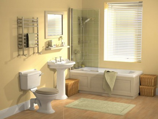 ควรเลือกตกแต่งห้องน้ำอย่างเรียบง่ายใช้วัสดุที่เป็นมิตรกับสิ่งแวดล้อมสามารถเลือกกระเบื้องปูพื้นและผนังที่ผลิตออกมาหลากหลายแบบทั้งที่มีสีและผิวเลียนแบบธรรมชาติ นอกจากนั้นยังเลือกใช้วัสดุธรรมชาติแท้ ๆ เช่น หินและหินกาบ มาตกแต่งเพิ่มเติมในบางจุดได้