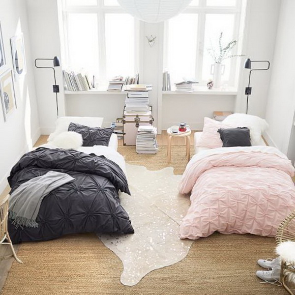 แน่นอนว่าการอยู่ร่วมกับรูมเมทจะช่วยลดช่องว่างระหว่างคนที่ต้องอยู่ร่วมกัน แต่ในขณะเดียวกันก็อาจก่อให้เกิดความเครียด หรือความขัดแย้งกันได้ ดังนั้นเราจึงแนะนำว่าให้แบ่งพื้นที่ของตนเองแบบนุ่มนวล อาจจะเป็นพรมสักชิ้นวางตรงกลางห้องเพื่อแบ่งพื้นที่ส่วนของใครของมัน แม้หลายคนอาจจะรู้สึกแปลกๆ แต่นี่คือสิ่งสำคัญ