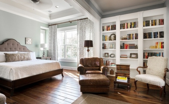 รู้หรือไม่ว่าการที่มีห้องนอนใหญ่โอ่อ่าอย่างกับโรงแรมห้าดาวนั้น ทำให้รู้สึกเหมือนว่าห้องนอนเป็นบ้านหลังเล็กที่แฝงอยู่ในบ้านหลังใหญ่เลยก็ว่าได้ ฉะนั้นการที่มีห้องใหญ่นั้นไม่ใช่เรื่องไม่ดีนะคะ แต่คุณสามารถใช้พื้นที่ทุกตารางนิ้วในห้องนอนได้คุ้มค่ากว่าการที่จะมีแค่เตียงนอนเท่านั้น ลองหาชั้นหนังสือ โซฟาสวย ๆ หรือยกโต๊ะทำงานมาไว้ด้วยก็ยังได้ เพราะนอกจากไม่จำเป็นต้องแยกห้องทำงาน ห้องอ่านหนังสือออกต่างหากแล้ว ยังทำให้พื้นที่ว่าง ๆ ในห้องนอนถูกใช้ประโยชน์ได้อย่างคุ้มค่าอีกด้วย