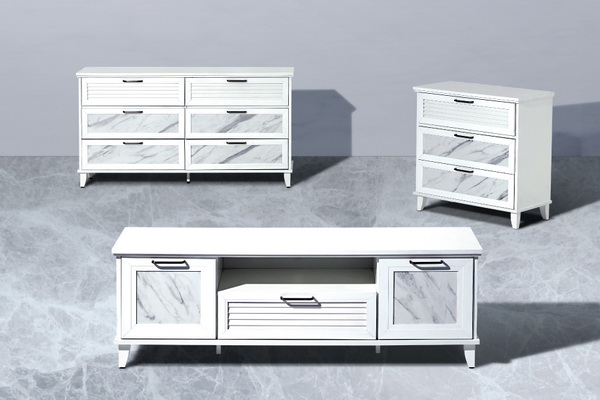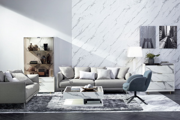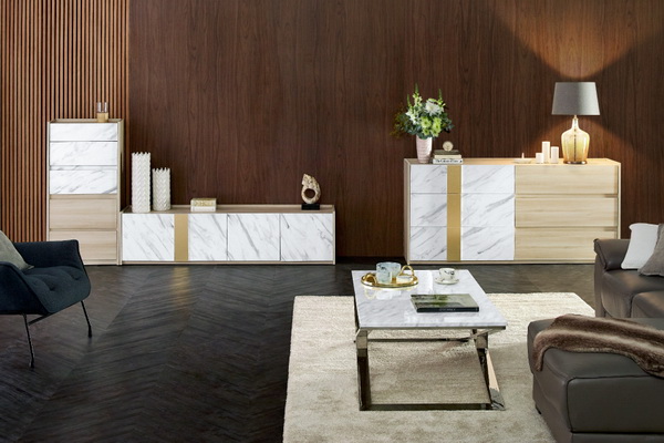 2. Marquina Collection | The Charming Prestige : เม็ดหินสีดำที่ระยิบระยับไปด้วยหลอดเลือดสีขาวทั่วทั้งแผ่น คือคุณภาพและความงดงามของหินอ่อนดำแห่งแคว้นบาสก์ เมื่อนำมาผสานลงบนเฟอร์นิเจอร์ ออกแบบสลับด้วยกราฟฟิกเส้นโลหะ ให้ลุคเท่ นิ่ง และมีเอกลักษณ์