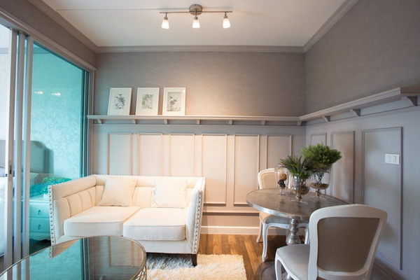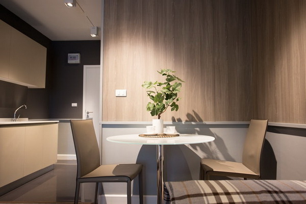 3. จัดวางให้เข้ามุม สำหรับการจัดวางมุมโต๊ะอาหารขนาดเล็กที่เหมาะสมกับคอนโดก็คือ การจัดวางโต๊ะให้เข้าที่เข้าทางที่มุมใดมุมหนึ่งของห้องมากที่สุด โดยควรเลือกใช้โต๊ะและเก้าอี้ที่มีขนาดเล็กกะทัดรัด หากสามารถพับและจัดเก็บได้ง่ายก็จะช่วยประหยัดพื้นที่ใช้สอยพื้นที่ห้องอาหารของคอนโดได้มากยิ่งขึ้น
