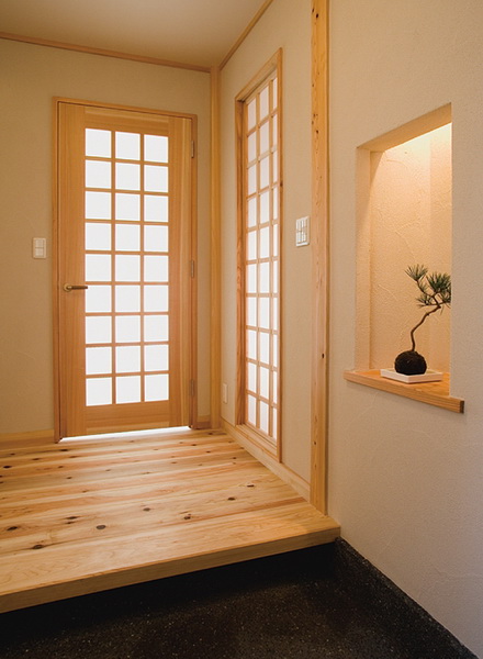 เพราะคนญี่ปุ่นให้ความสำคัญกับความเป็นธรรมชาติมาก จึงมักจะนำไม้เข้ามามีส่วนร่วมในการออกแบบและตกแต่งเสมอ ไม่ว่าจะด้านโครงสร้างที่มักจะใช้ไม้ทำพื้น ผนัง ประตู หน้าต่าง หรือด้านการตกแต่งที่มักจะใช้ไม้ทำฉากกั้น เฟอร์นิเจอร์ และของกระจุกกระจิก โดยไม้ที่นิยมนำมาใช้ในบ้านบ่อย ๆ ได้แก่ ไม้ไผ่ ไม้เมเปิ้ล ไม้ฮิโนกิ ไม้เฮมล็อก และไม้สนแดง