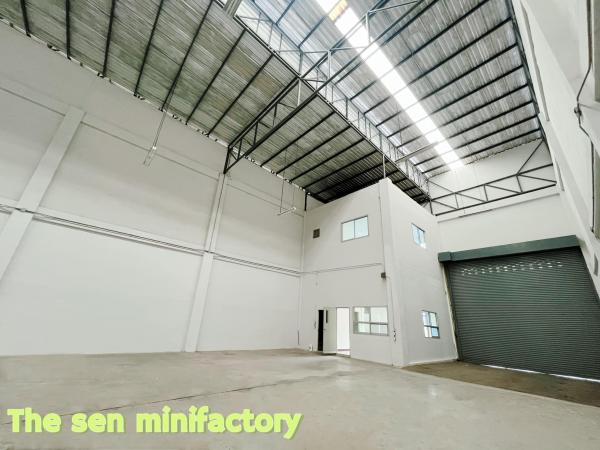 โรงงานให้เช่าหรือสำนักงานและคลังสินค้า ชั้นเดียว ขนาด กว้าง 10 เมตร ลึก 23 เมตร พื้นที่ใช้สอยรวม 230 ตร.เมตร แบ่งเป็น สำนักงาน ขนาด กว้าง 5 เมตร ลึก 6 เมตร และ ที่เหลือ เป็นพื้นที่คลังสินค้า อาคารพร้อมใช้งาน บนแปลง AB ด้านซ้ายมือของป้อมยามโครงการ