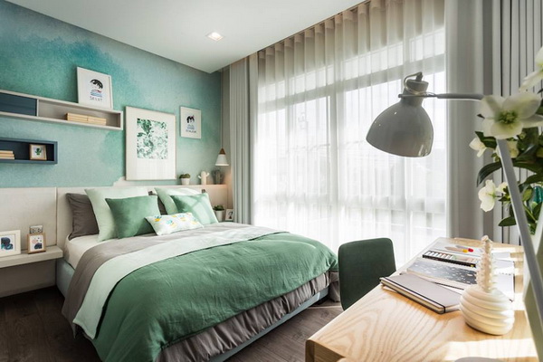 การใช้ผ้าม่าน หรือชุดเครื่องนอน สีของผ้าคลุมเฟอร์นิเจอร์ ปลอกหมอน ผ้าคลุมโซฟา เป็นโทนสีน้ำเงิน สีฟ้า สีคราม และสีเขียวธรรมชาติ จะส่งเสริมให้ได้ต้อนรับมิตรใหม่ ๆ และรักษาความสัมพันธ์อันยั่งยืน