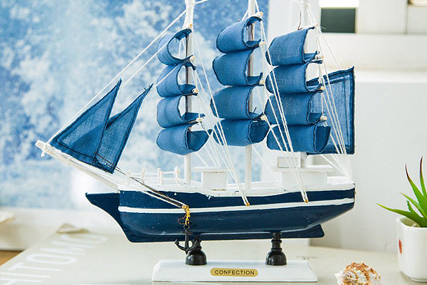 ตกแต่งบ้านด้วยเรือใบเรือสำเภาและเรือแบบอื่นๆ ที่เป็นรูปจำลอง เพราะเรือเป็นสัญลักษณ์ของความมั่งคั่งและการเดินทาง การตกแต่งบ้านด้วยรูปเรือจำลองจะช่วยให้มีโอกาสได้เดินทางไปต่างประเทศเสมอและมีเงินทองมั่งคั่งสมบูรณ์ ตั้งเรือจำลองไว้ในห้องรับแขกหันหัวเรือเข้าในบ้านเสมอและบนเรือควรประดับตกแต่งด้วยเงินตราของจีน เงินไทย เพชรพลอย เปรียบเหมือนเรือนำแก้วแหวนเงินทองมาให้เรา