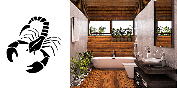 คล้ายกันกับราศีกรกฎ ที่มีธาตุน้ำเป็นเจ้าเรือน ทุกที่ๆ มีน้ำเป็นส่วนประกอบ คือจุดรับพลังสำคัญของคุณ อย่างไรก็ตาม ห้องน้ำภายในตัวบ้าน และห้องน้ำภายในห้องนอน คือส่วนสำคัญที่สุดของคุณ