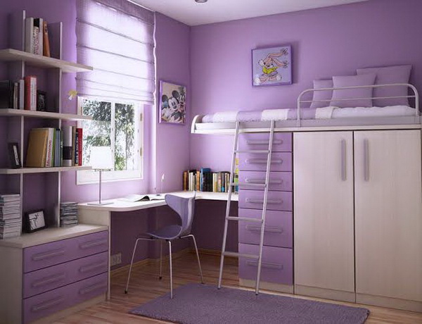 สีม่วง : เป็นสีที่สง่าและมีระดับ จึงเป็นสัญลักษณ์ของความหรูหรา ร่ำรวย เหมาะกับห้องที่ต้องใช้ความคิดสร้างสรรค์หรือสติปัญญา เช่น ห้องทำงาน ห้องสมุด หรือโต๊ะหนังสือ แถมยังเป็นสีที่ให้ความรู้สึกเป็นผู้หญิงหน่อย ๆ ด้วย