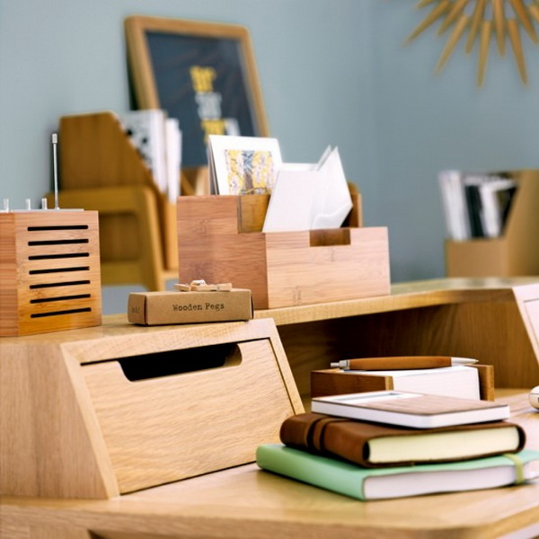 3. กล่องไม้วางบนโต๊ะทำงาน