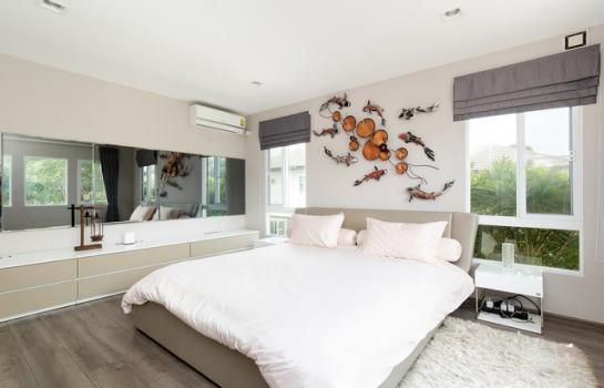 -ชั้นบน มี 2 ห้องนอน ประกอบด้วย 1 ห้องนอนมาสเตอร์ พร้อมห้องน้ำในตัว แยกพื้นที่เปียกแห้งไว้เรียบร้อย / ห้องนอนที่ 2 พร้อมห้องน้ำในตัว