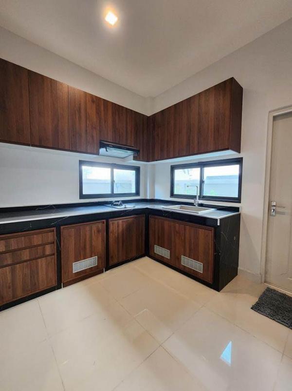 ชั้นบนมี 3 ห้องนอน 3 ห้องน้ำ มีห้องน้ำในตัวทุกห้อง ในห้องนอนตกแต่งไว้เรียบร้อย บิ้วอินตู้เสื้อผ้า