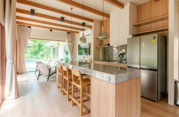 ด้วยสไตล์การตกแต่งแบบ #โมเดิร์นบาหลี เน้นความรู้สึกสบาย เรียบง่าย ใช้วัสดุโทนสีอบอุ่น ผสมผสานงานไม้และงานคราฟต์ท้องถิ่น