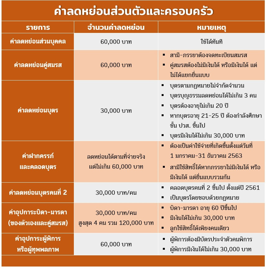 คลิกดูภาพใหญ่ สรุปค่าลดหย่อนส่วนตัวและครอบครัว