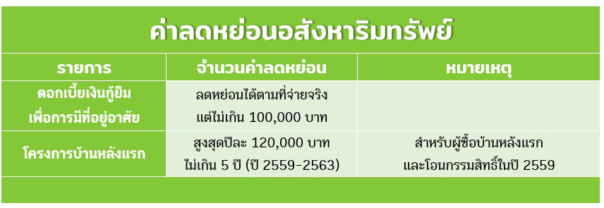 คลิกดูภาพใหญ่ สรุปค่าลดหย่อนอสังหาริมทรัพย์
