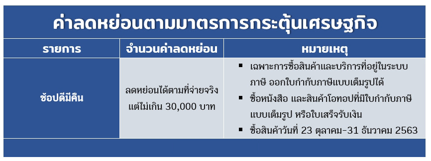 คลิกดูภาพใหญ่ สรุปค่าลดหย่อนตามการกระตุ้นเศรษฐกิจ