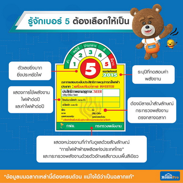 การเลือกเครื่องใช้ไฟฟ้า ที่ได้รับการรับรอง “ฉลากประหยัดไฟฟ้าเบอร์ 5” จะช่วยเราคำนวณค่าใช้จ่ายโดยประมาณต่อปี ว่าเครื่องใช้ไฟฟ้าแต่ละชนิดมีประสิทธิภาพในการช่วยประหยัดพลังงานได้มากน้อยแค่ไหน แล้วบนฉลากบอกอะไรกับเราบ้าง
