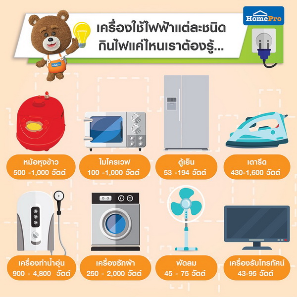 เครื่องใช้ไฟฟ้าแต่ละชนิดกินไฟแค่ไหน