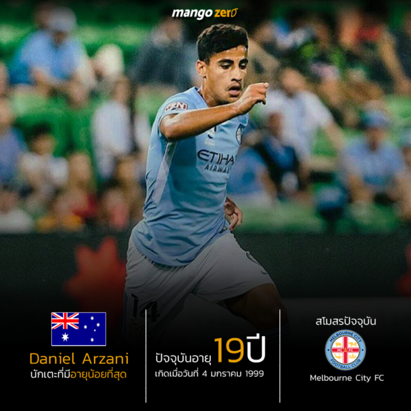 Daniel Arzani à»ç¹¹Ñ¡àµÐ·ÕèÁÕÍÒÂØ¹éÍ·ÕèÊØ´ã¹¡ÒÃá¢è§¢Ñ¹¿ØµºÍÅâÅ¡ 2018 ÍÒÂØ 19 »Õ (à¡Ô´ 4 Á¡ÃÒ¤Á 1998) ŧàÅè¹à»ç¹¹Ñ¡àµÐãËé¡Ñº·ÕÁªÒµÔÍÍÊàµÃàÅÕÂ㹿صºÍÅâÅ¡ »Ñ¨¨ØºÑ¹Êѧ¡Ñ´¡ÑºÊâÁÊà Melbourne City FC