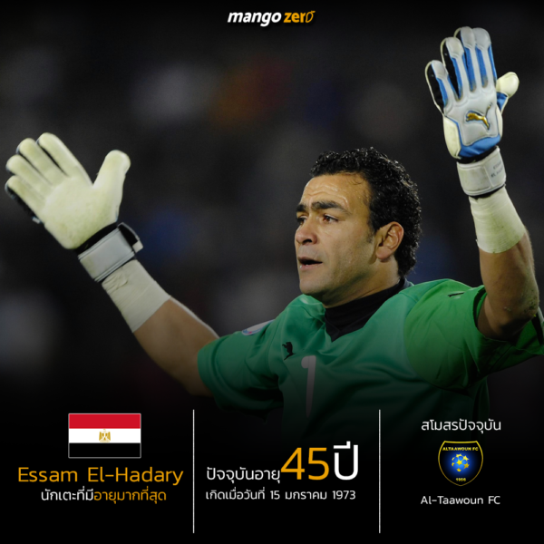 Essam El-Hadary à»ç¹¹Ñ¡àµÐ·ÕèÍÒÂØÁÒ¡·ÕèÊØ´ã¹¡ÒÃá¢è§¢Ñ¹¿ØµºÍÅâÅ¡ 2018 ÁÕÍÒÂØ¶Ö§ 45 »Õ (à¡Ô´àÁ×èÍÇѹ·Õè 15 Á¡ÃÒ¤Á 1973) ´ÓçµÓá˹觼ÙéÃÑ¡ÉÒ»ÃеٷÕÁªÒµÔÍÕÂÔ»µì »Ñ¨¨ØºÑ¹àÅè¹ãËé¡ÑºÊâÁÊà Al-Taawoun FC