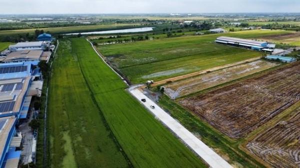 ขายที่ดิน6ไร่ผังสีม่วงจุดสีขาวเขตEEC อ.เมืองฉะเชิงเทราถนนปองพลหน้ากว้าง 105 เมตร...