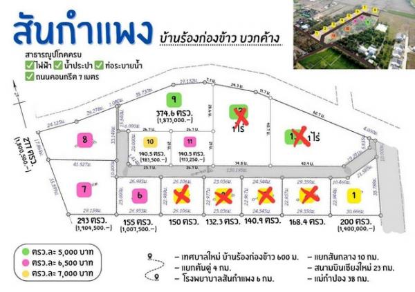 ขายที่ดินจัดสรร 155ตรว. 930,000บาท ฟรีโอน สาธารณูปโภคครบ ต.บวกค้าง อ.สันกำแพง เชียงใหม่